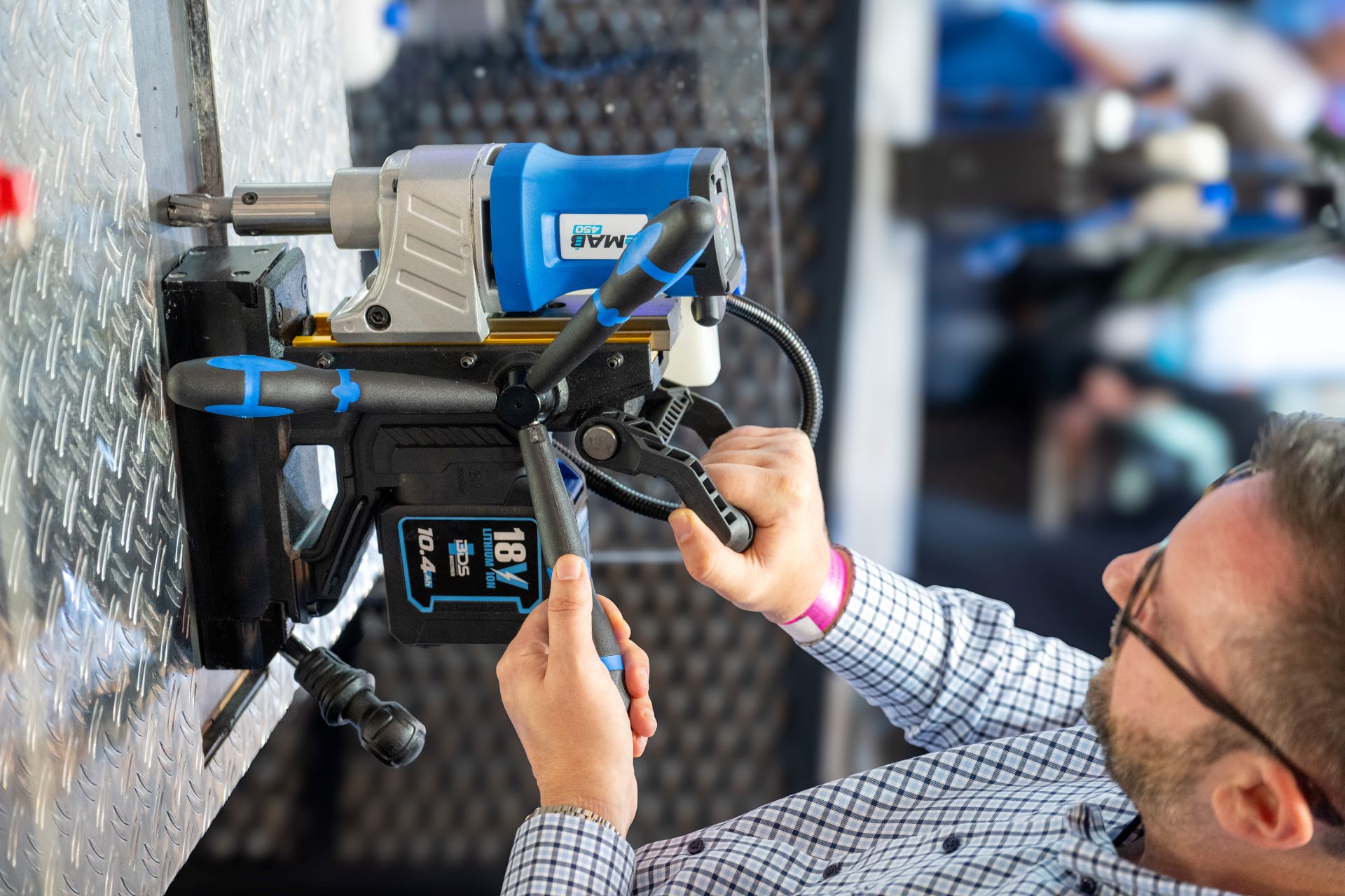 Noua masina de gaurit magnetica fara fir eMAB 450, cu baterie Li-Ion 18 V / 10.4 Ah, ofera gaurire precisa si independenta de retea, destinata utilizarii profesionale.