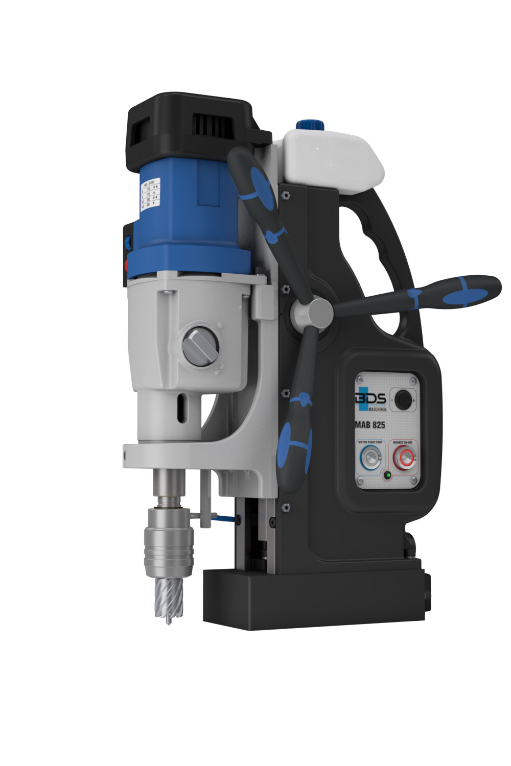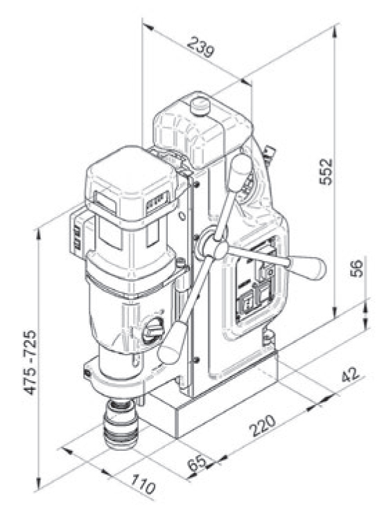 Modelul clasic dintre masinile mari de gaurit cu baza magnetica BDS. Permite gaurire cu carota pana la Ø 100 mm si adancime de taiere de 110 mm, precum si filetare pana la M30.
